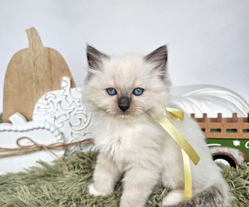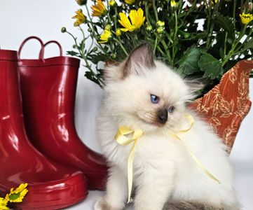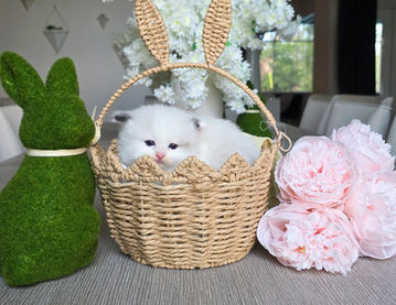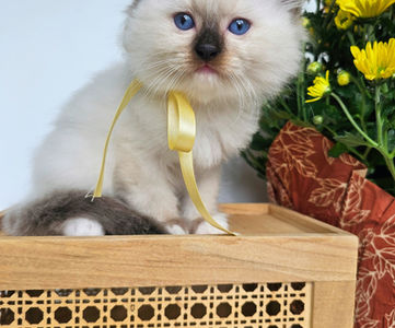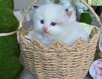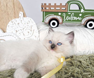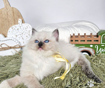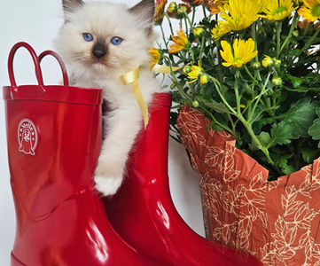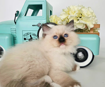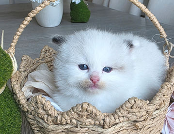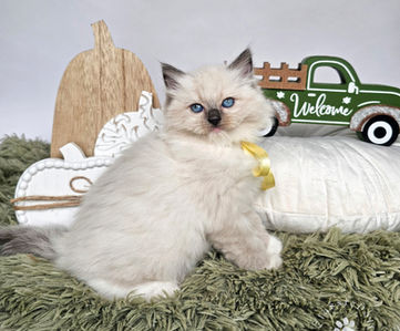 Meet our fluffy little prince! This handsome male kitten has the softest fur, deep blue eyes, and the sweetest personality. He loves to snuggle, play, and explore, always curious and full of charm. He is growing up so nicely, already showing that classic ragdoll charm-calm, affectionate, and very people-oriented!